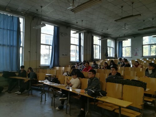见面会伊始,会长张玥首先对社团进行简单介绍,让各会员深入了解指弹之间吉他协会,接着就近期热议的购琴问题进行答疑解惑,简单为会员介绍吉他分类以及几种吉他类型。接着由技术部部长吴昱呈给大家详细介绍,并依次用合板琴,面单琴,全单琴向会员显示。接着又从吉他风格上向会员介绍民谣、指弹以及古典吉他,技术部部长吴昱呈又在介绍期间弹奏《杀死那个石家庄人》、《遇见》、《As long as you love me》等曲目。见面会最后到场会员缴纳会费,会长张玥向大家提出购琴意见并给会员提供出方便、可靠途径。最后,张玥预告今晚7:00在山东理工大学西校区有一场由指弹之间吉他协会承办的迎新晚会,届时希望各位同学一起观看,整次见面会宣布结束。
