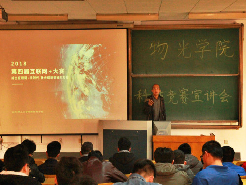 会议伊始,崔鹏老师首先对2018年度第四届全国“互联网+”创业大赛进行宣讲和动员,分别从“互联网+”比赛的背景,意义以及项目的选择等方面进行了讲述;其次,崔鹏老师根据K体育·(sports)官方网站专业特色,梳理了本K体育·(sports)官方网站学生历年来参加的比赛,将比赛分为三大类:创新创业类、专业相关类和其他类,同时将每一类包括的比赛从比赛简介、参赛要求、参赛时间以及赛事的重要性分别进行了详细介绍。最后,他讲到科技竞赛是知识和创新的结合,参赛经历对个人发展具有重要意义,希望同学们积极关注比赛,参加比赛,锻炼自己,即是自身成长成才的必要,也是时代发展的需要。同时,为让同学们更好的了解竞赛有关事宜,K体育·(sports)官方网站微信公众号也将会推出与竞赛相关的文章,供同学们参考。