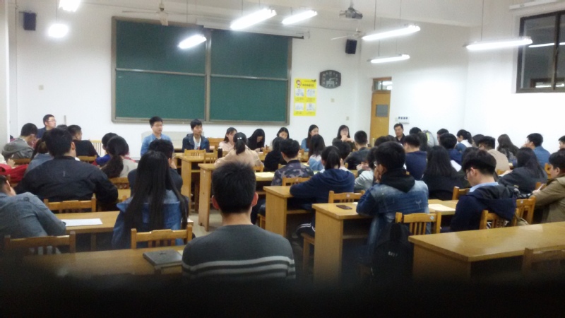 首先,物理系王操老师针对考研前景、历年考研情况和考研注意事项等方面进行了简单的介绍与说明,希望大家做好选择、提前准备,并坚定考研的信心。其次,2014级考取研究生的学长、学姐们结合自我考研经历,分别从择校、复习安排、压力调节、复试要点等方面,向2015级学弟学妹们介绍了自己的宝贵经验,并鼓励他们要充满信心。再次,2015级同学根据自己的实际情况,对考研过程中的择校、专业选择和复习安排等方面存在的疑问,与在座的学长、学姐及老师们进行深入地交流。最后,物理系通过建立的2015级物理考研交流群,在群中提供了往届考研的具体学校、专业方向与考试内容,方便日后联系与交流,并在群内提供了诸多具有代表性的历年考研的专业课程复习材料。