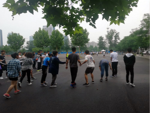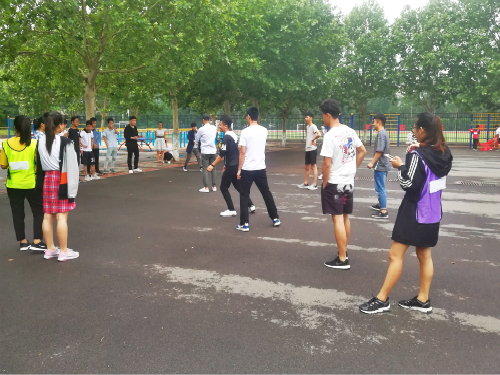 活动开始,李文珂讲解活动参与方式,她讲到本次活动共分为有朋自远方来——不一样的自我介绍、123木头人、寻寻觅觅——蒙眼寻人、绕口令、躲避球以及五人六足六个游戏,比赛项目丰富,趣味性十足,合作性强,参赛同学随机分成四组,每组十人,小组在各个活动完成后会获得相应分值,最后由工作人员根据得分情况进行排名。比赛过程中同学们与组内其他成员积极配合,互帮互助,力争能够获得更高的分数。其中,在游戏“不一样的自我介绍”中,小组内的成员介绍完自己的姓名家乡之后就开始调动大脑,充分发挥记忆力,以求在接下来的自我介绍中能够更加熟练,进而减少所需时间。在蒙眼寻人活动中,成员之间的配合显得更加重要——组内一名同学指挥另一名戴眼罩的同学去“抓捕”处在规定区域内其他小组的成员,抓到的人数越多得分越高,这无疑是对同学们搭配能力的一个考验。成员相互信任和配合,并不断地在实践中摸索方法和技巧,最终才能收获胜利的果实。随着时间的进行,其他的游戏也在同学们的欢声笑语中结束,最后同学们相拥在一起拍照留念。