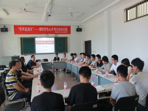 6月14日下午,K体育·(sports)官方网站在15号教学楼226教室举行第二期“学声直通车”,此项活动是K体育·(sports)官方网站2018年度共青团服务青年学生十件实事之一,旨在倾听学生心声,解决实际问题。党总支副书记戴洁、副院长刘瑞金、任课教师冯东太、孟庆宽、葛筱璐、武继江,辅导员崔鹏以及各班级学生代表参加此次活动。本期学声直通车主题为本学期专业课程学习,由党总支副书记戴洁主持。