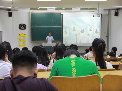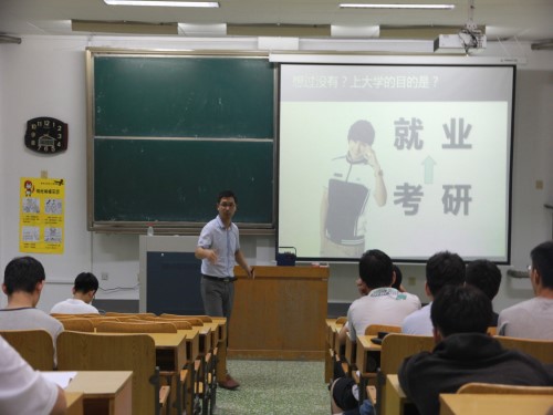 随后,修俊山围绕光电系建设进行概述,并从科研反哺教学、教学资源与实验室、实习基地建设两方面分别做了详细介绍。修俊山通过分析学习成绩、录取院校、就业类别不同的毕业生工资待遇,介绍光电系毕业生的就业情况,他强调与会学生应明确方向,增加专业知识储备量,努力争做专业性技术人才。之后,修俊山以一张毕业生工作面试拥挤的人群照片告诫与会学生,大学期间应摒弃同学教我颓废、上课我要补觉的消极思想。他认为大学生应确保收获母校文凭、实用技能、独立人格、同学友情,拼凑出走向成功的四拼图。他希望准备考研的同学们打好学科基础,不准备考研的同学掌握一门实用技能,同时找准自身定位,不断充实自我、积累经验,逐步提高自我价值。
