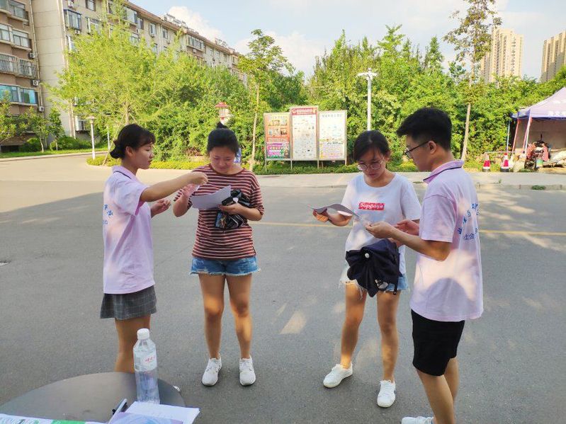 根据之前商讨的部署和安排,同学们不畏酷暑,紧接着便毫不犹豫的投入到了紧张的实践活动之中。首先,团队成员来到博大小区,在社区门口挂上横幅之后,每个人根据分工情况便开始工作,一部分同学进入小区内对社会实践内容进行宣传;一部分同学负责收集损坏的电器并分发“电器调研”调查问卷。头顶烈日,细密可见的汗珠从每一名队员脸颊上流下来,但每位成员都依旧热情高涨,积极投入实践。