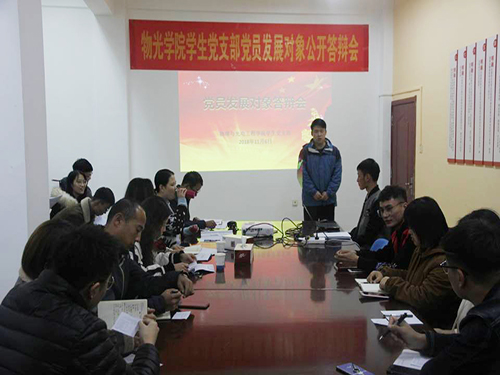11月6日下午,K体育·(sports)官方网站在15号教学楼314会议室举行2018年下半年党员发展对象公开答辩会。学校党委组织部专职组织员王玉冰、院党总支副书记戴洁、学生党支部书记亓鹏、辅导员崔鹏、张起,K体育·(sports)官方网站学生党支部全体党员以及部分入党积极分子代表参与此次答辩会,K体育·(sports)官方网站本次党员发展对象林杉、庄胜斌、华丹、刘博晔、陈士举、张帅等六人参与答辩,答辩会由张起主持。