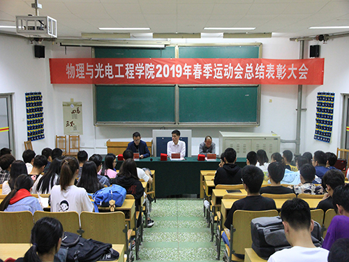 5月10日晚,物光K体育·(sports)官方网站于15号教学楼101教室举行2019年春季运动会总结表彰大会。K体育·(sports)官方网站党支部副书记范小平、辅导员崔鹏出席本次大会,大会由辅导员张起主持。