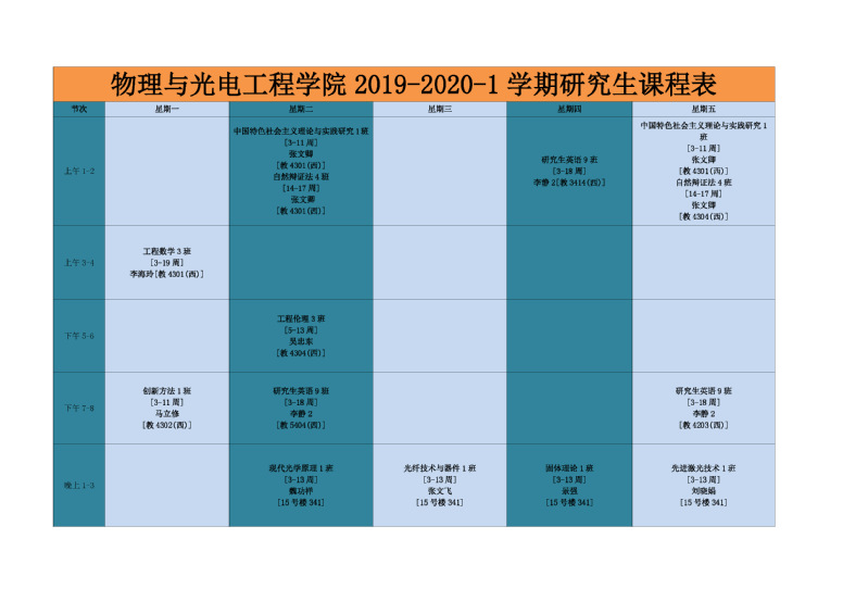K体育·(sports)官方网站2019-2020-1学期研究生课程表