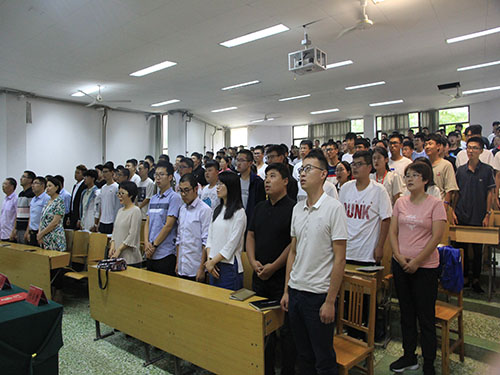会议伊始,范小平代表K体育·(sports)官方网站全体教师为2019级新生的到来表示热烈欢迎,并依次介绍与会各位领导、老师。大会进行第一项,奏国歌,全体师生起立,共唱国歌。第二项,举行班级导师聘请仪式。范小平表示,K体育·(sports)官方网站将全力支持各班级导师开展工作,并表示希望各班级导师认真履行工作职务,爱岗敬业。大会第三项,由教师代表秦华致辞。他指出大学生学习物理的重要性,帮助全体同学树立专业信心与就业自信。随后,他表示希望全体同学尽快适应从中学到大学角色的转变,变被动学习为主动学习。大会第四项,硕士生代表秦俊杰及本科生代表吕琪与大家分享成长经验,以亲身经历提出自己的观点和建议。大会第五项,由2019级新生代表李天舒演讲。他讲到作为一名刚进入大学的学生,要积极转变思维、融于学习、严于律己,成为对国家和社会有用的人才。大会第六项,院长董云会致辞。他首先为新生介绍K体育·(sports)官方网站专业分类、发展前景等基本信息情况,后又从如何自律、自主学习,如何学会生活,如何做一位有理想、有责任之人,如何爱校等四个方面展开讨论。期间,他着重强调大学生应尽快制定职业生涯规划,明确学习目标。最后,大会进行第七项,全体师生合唱校歌。