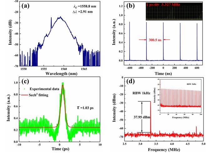 本论文研究了新型非层状二维材料碲烯近红外波段的可饱和吸收性能,利用其优良的饱和吸收特性搭建了1.5 μm Er3+掺杂光纤锁模激光器,实现了人眼安全波段、1.03 ps锁模激光脉冲输出,最大平均功率和最大脉冲能量分别为3.69 mW和1.108 nJ。本工作,拓宽了碲烯纳米材料在光子学领域的应用范畴。