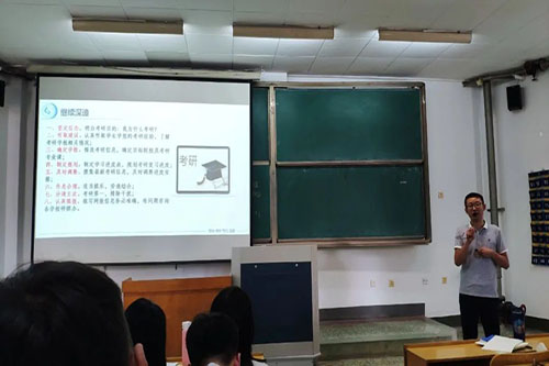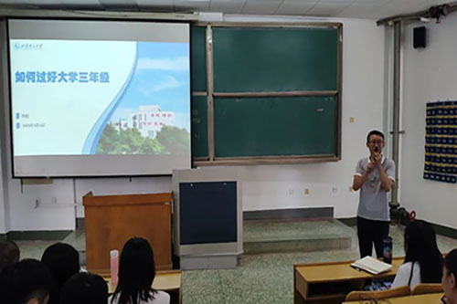张起指出,大三作为大学中最关键的一年,起到承上启下的作用,经历过大一的懵懂,大二的浮躁,进入大三同学们才能真切地感受到自身的变化,开始正视毕业后的发展问题。同学们共同再思考“毕业后,我想干什么?”,张起老师从继续深造、考取公务员、考取教师编制、就业、自主创业、子承父业5个方面讲解大学毕业后就业方向。 其中,在继续深造方面,他从”坚定信念、听取建议、确定学校、制定规划、及时调整、作息合理、分清主次、认真填报“等八个方面依次分析,耐心讲解,并通过结合实际事例,详细的为同学讲明了考研的相关事宜。在就业方面,他从找准定位,拓宽知识面、术业有专攻、积极听取建议,认真考取证书、积极参加竞赛、重视课外实习展开讲述,告知同学们提前准备,不留遗憾。此外,老师还带领同学们详细了解了考取公务员与教师编、自主创业、子承父业的过程。 在讲解了大三同学应树立的目标和应做的准备后,张起传授了如何面对瓶颈期的“六步法”,他降到到,我们应该具备良好的心态并学会记录、做好总结,最重要的是积极面对。 最后,张起从“态度决定一切”“有付出就有收获”“结果只在于你努力与否”三个方面引领同学们更好的面对已经到来的大三生活,他希望通过本次班会各位同学能真正意识到大学时光转瞬即逝,需要每位同学尽快树立目标并为之奋斗,真正将自己的未来把握在自己的手中。 通过本次班会,张起从多层次多角度为同学们明确了大三学生应做的准备。会后同学们纷纷表示要为”如何过好大学三年级“树立个人目标,积极调整在家懒散的状态,并表示在以后的学习生活中将时刻牢记老师的教导,认真学习,踏实工作,为自己的美好未来添砖加瓦。