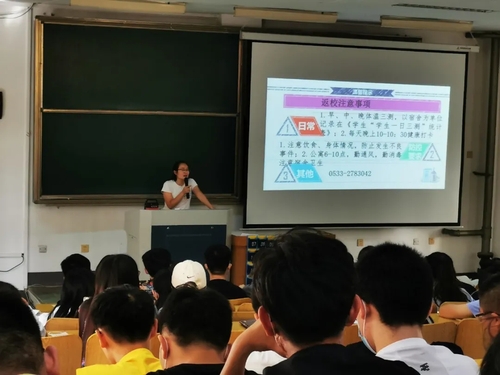 紧接着,王芳在新学期的生活方面指出:在疫情防疫下的特殊时期,我们要时刻注意自己的卫生安全与行动,一定要服从老师与学校的命令,一旦出现身体情况一定要及时上报解决。在宿舍中要注意卫生,防止宿舍因卫生引发的疾病滋生。及时打扫卫生,做好宿舍中的防火与电气使用安全,使我们都拥有有一个温馨安全的小窝。