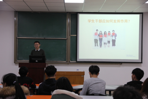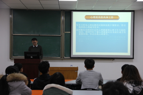 首先,他具体阐述了班干部及心理委员的主要职责,他给出大学生心理健康教育中心的主要服务内容和联系方式,使班干部和心理委员工作的具体展开能够更加顺利。