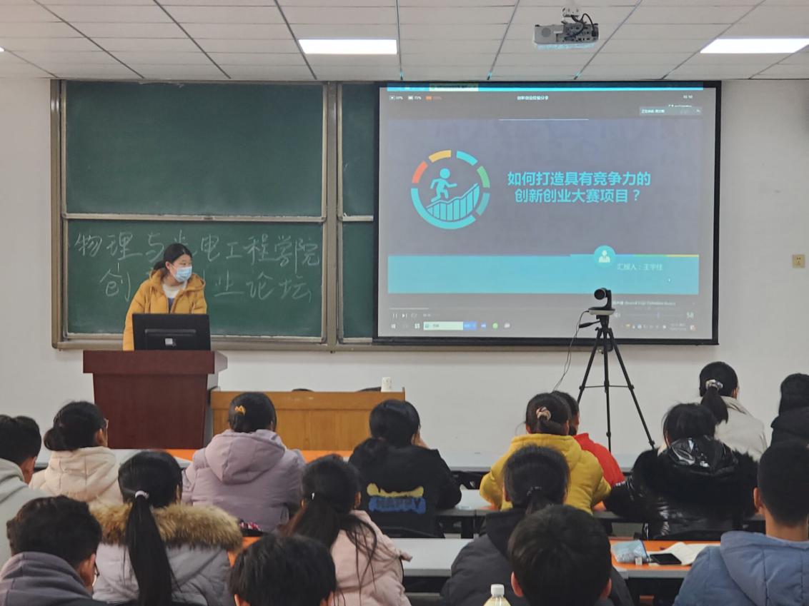 本次论坛围绕如何打造具有竞争力的创新创业大赛项目进行分享,从项目的选择,项目的升华和项目的打造三部分进行介绍。她表示,在项目的选择过程中,要依托大背景,针对小领域,找到真问题。在队伍组建方面,她认为一支队伍要协作如一人,团队成员劲要往一处使,一个人要像一支队伍,并且指导老师要全面统筹。接着,她以糖木团队为例,强调团队的重要性。