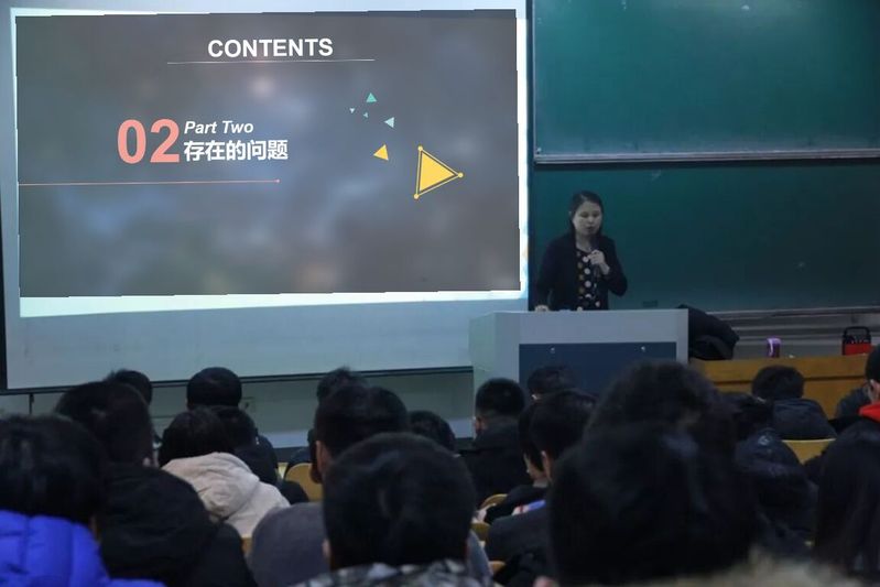 随后,亓鹏老师讲到,2017级学生现在面临考研和毕业的双重压力,学业繁重,决不能掉以轻心。她希望全体2017级同学都能结合学校提出的培养“五有”人才的目标,提高自身的抗压能力,抓住考研复习的最后时间,力争在即将到来的研究生考试中取得优异的成绩。