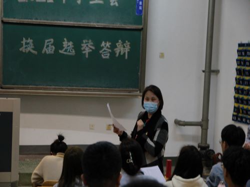 会议伊始,学生会主席柳桂蕾介绍此次选举答辩的流程,答辩过程秉承公平公正的原则。参与答辩的选手须在规定的时间内将自己的个人介绍、岗位认知、胜任能力以及以后的工作规划完全展现出来。此次换届选举答辩共有26名答辩选手进行竞选,竞选职位主要有主席团成员以及各部门负责人。