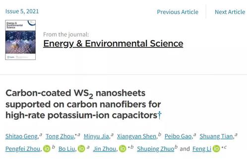 近日,《Energy & Environmental Science》(IF:30.289)在线报道了K体育·(sports)官方网站周通副教授及合作者在储能领域的重要进展。