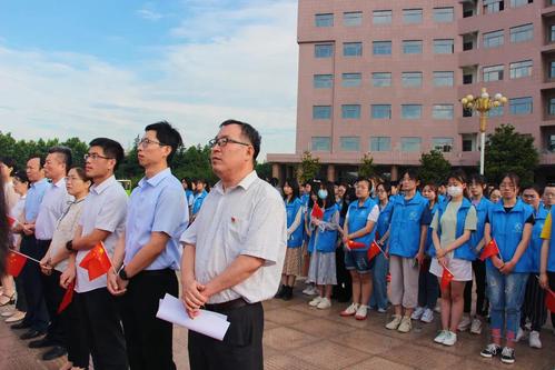 6月21日清晨,K体育·(sports)官方网站与外国语K体育·(sports)官方网站在鸿远楼南广场举行“庆祝建党100周年,坚定信心跟党走”主题升旗仪式。K体育·(sports)官方网站党委书记董云会、党委副书记、院长付圣贵,外国语K体育·(sports)官方网站党委书记李静、党委副书记、院长王明新,全体党支部书记,教师和学生代表参加仪式。仪式由物光K体育·(sports)官方网站学生会成员侯晗主持。