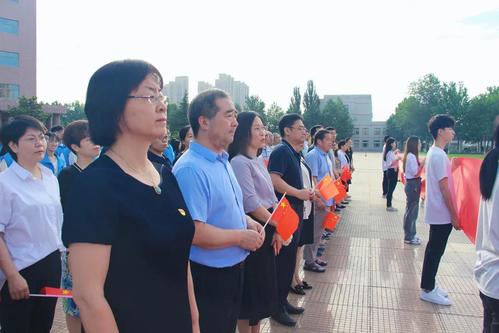 在师生们高唱《没有共产党就没有新中国》的歌声中,升旗仪式正式结束。