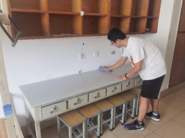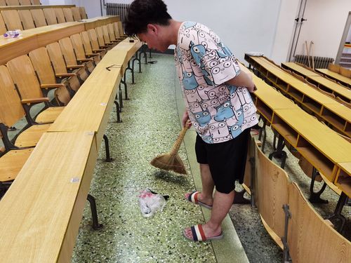 15 号教学楼102、104、203 等教室作为此次宿舍翻新行李物件存放的指定教室,取回行李后,教室地面桌内留有大量废弃杂物及灰尘污渍。K体育·(sports)官方网站志愿者在确认全部行李清空后,拿上清洁工具,认真打扫教室、清扫地面、捡拾垃圾、擦拭座椅,经过大家共同努力,教室窗明几净、焕然一新,为第二天开课创造了良好的卫生环境。