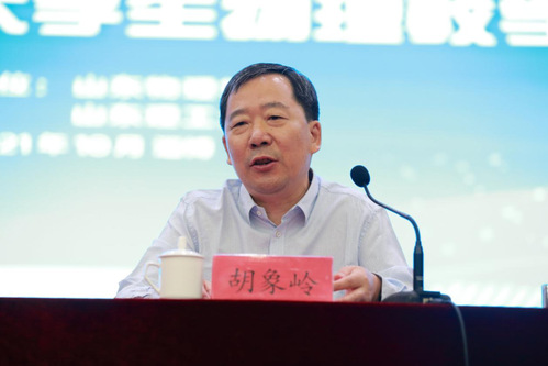 山东物理学会常务理事、大赛委员会主任、曲阜师范大学胡象岭教授做了大赛总结