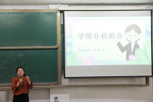 张起老师从各班级学习成绩分析、奖学金获得者展示、和竞赛获奖展示三个方面对 5个班级进行班情学情分析 ,通过每个班级之间的对比和每个班级过去3年发展历程的对比 ,展示每个班级的特点。他指出,大学四年弹指一挥间,鼓励就业考研的同学要坚持奋斗,刻苦努力,切实走好大学阶段的“最后一公里”。