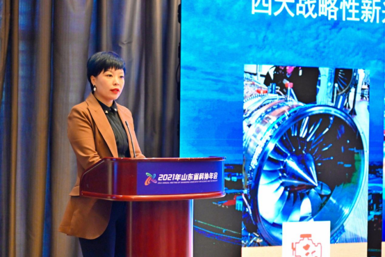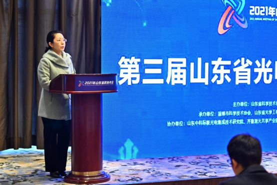 淄博市高新区科技工业和信息化局副局长房静同志致辞。在致辞中她代表淄博市高新区科技工业和信息化局对大会的举办表示热烈的祝贺。她介绍了高新区高新技术产业和新经济集聚发展的整体情况,诚恳希望专家学者把脉开方,带着团队和项目来淄博市发展,并承诺将以最好的政策,最优的环境,最快的速度做好各项服务保障,持续优化科技成果转化环境,搭建科技成果转化平台。推动光电信息产业高质量发展,为淄博“十四五”时期经济社会发展提供有力支撑,最后预祝本次大会圆满成功。
