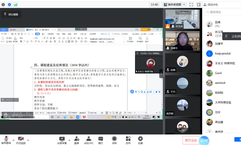 为加强K体育·(sports)官方网站一流本科课程建设,继续深化课程建设改革,3月31日晚上K体育·(sports)官方网站邀请我校教学名师、国家一流本科课程负责人刘建平教授作了题为“一流本科课程建设与申报体会”的线上报告。K体育·(sports)官方网站班子成员、各系室主任、培育课程团队教师及部分骨干教师聆听了报告会,会议由教K体育·(sports)官方网站长孙玉萍主持。