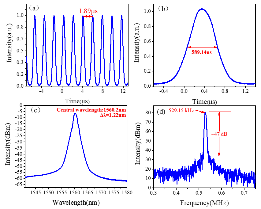 我校K体育·(sports)官方网站刘晓娟副教授指导研究生洪之峰、蒋习雯、张美霞等人制备了Cr2Si2Te6纳米片,并将其用作高功率、大脉冲能量锁模掺铒光纤(EDF)激光器中的可饱和吸收体(SA)。在总腔长为240 m的情况下,实现了最大脉冲能量高达244.76 nJ、重复频率为847.64 kHz的稳定锁模工作。经过对光纤激光器环形腔的计算与优化,在适度牺牲平均输出功率的前提下,通过降低光纤激光器输出锁模脉冲频率的办法,实现了提升单脉冲能量的设计初衷。理论与实验完全吻合。当腔长最终被延伸至390 m时,实验所能获得的最大脉冲能量相应地被成功提升至325.50 nJ。据我们所知,这是迄今为止通过二维(2D)材料可饱和吸收体(SA)在锁模光纤激光器中实现的最大脉冲能量。这项工作一方面为锁模光纤激光器产生大脉冲能量的研究向前迈进了一步,另一方面,充分证明了铁磁绝缘体Cr2Si2Te6具有优良的非线性可饱和吸收性能、在开放环境中的抗氧化性能以及优异的热稳定性。丰富了对二维材料的研究与认识。