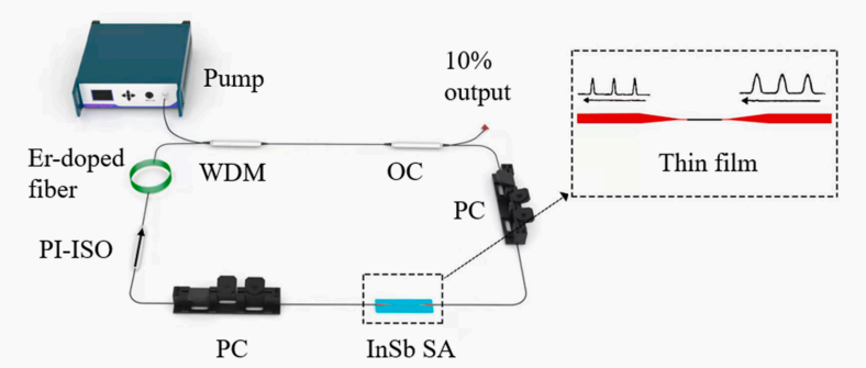 基于可饱和吸收体的被动锁模技术,是脉冲光纤激光器输出超短脉冲的重要方式。所以,对新型可饱和吸收体的探索在目前仍是光纤激光器领域的工作重点。InSb作为一种二元半导体材料,其间接带隙可以达到0.17eV,非常适用于可见光到中红外波长范围内的应用,此外,其具有优秀的电子迁移率、表面灵敏度和量子局部效应,这些特点使得InSb已经广泛应用到红外检测、光电元件、晶体管结构器件和磁阻元件。基于以上分析,InSb的可饱和吸收特性值得期待与深入研究。
