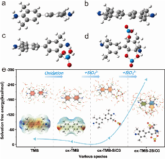 K体育·(sports)官方网站牛之慧博士及其合作者报道了一种无定形MnSiO3作为氧化酶,在比色检测生物硫醇的过程中表现出高可靠性和超灵敏度。实验结果表明,无定形结构中高价态锰离子的快速释放赋予了其出色的催化动力学(Km = 17 μM;Vmax= 0.977×10-8Ms−1)和低的检测限(10 nM)。理论计算结果表明,硅酸根离子降低了氧化态底物的溶剂化自由能,提高了酶反应曲线平台的稳定(~10 min)。10 min的可操作时间足以消除个体操作时间差异对检测结果的干扰,提高了体系的可靠性。此外,作者还将体系用于生物样品(血清和细胞)的特异性分析和视觉逻辑门的设计,通过与试剂盒对比进一步评价了体系的可靠性和灵敏度。相关工作以“Stable enzymatic curve platform and ultrafast catalytic kinetic endows MnSiO3 oxidase mimic with high reliability and supersensitivity”为题,发表于国际学术杂志Chemical Engineering Journal上,属中科院一区TOP期刊。