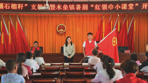 山东理工大学“鲁疆石榴籽”实践团赴新疆木垒开展为期十天的暑期社会实践。2023年7月12日,在人民政府的大力支持下,实践团在木垒镇人民政府举行暑期“红领巾小课堂”开班仪式。本次仪式由镇团委书记栾青胜主持,县团委副书记马婷、镇团委书记古丽拜旦以及各社区负责人出席,各社区学生代表与山东理工大学“鲁疆石榴籽”实践团成员参加仪式。