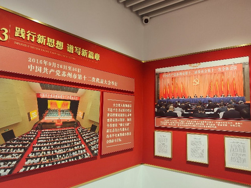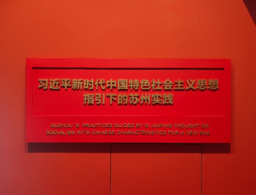最后,团队成员被一抹抹的中国红映满眼帘,这里是“习近平新时代中国特色社会主义思想指引下的苏州实践”主题展。整体围绕五个单元展开:创新引领发展、增进民生副社、践行绿色发展、人与社会全面发展、坚持全面从严治党。详细展现了苏州深入学习贯彻习近平新时代中国特色社会主义思想的具体实践和发展成果,让我们的心中为祖国感到无比的自豪。