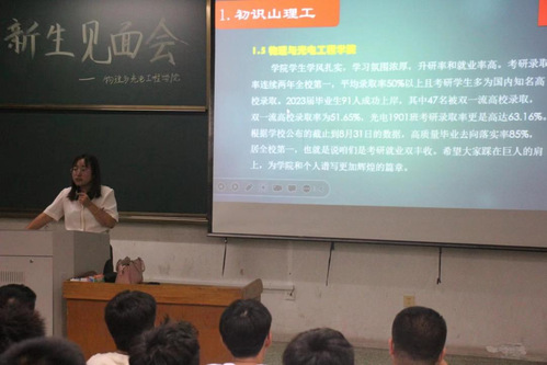 会议伊始,张媛首先向新生们做了自我介绍,随后她分别从大学生活的衣食住行、学校规章制度和近期学校工作安排等方面进行了讲解。张媛依次介绍了学校、K体育·(sports)官方网站基本情况和各专业带班班主任配置情况,然后对大学的综测、学分、奖学金制度等事宜进行了阐述,并希望所有的同学都可以尽快的融入大学的生活中。