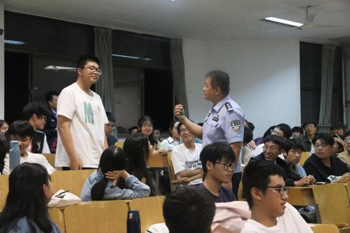 之后,张健以典型诈骗案件为切入口,分类别详细介绍了同学们常遇到的电信网络诈骗手段和常用话术。他结合当前新出现的高科技诈骗手段,通过视频的方式介绍了违法分子通过现代AI语音与AI换脸技术实施诈骗的全过程。讲座现场,他通过与学生实景对话展示的方式,帮助同学们进一步提升防骗识骗意识和能力。最后,他指出,防范电信网络诈骗,要从每个人做起,要从现在做起,希望同学们牢记此次讲座的核心内容,广而告之身边的亲属、同学、朋友等,坚决抵制电信网络诈骗,守护好自己的“钱袋子”。