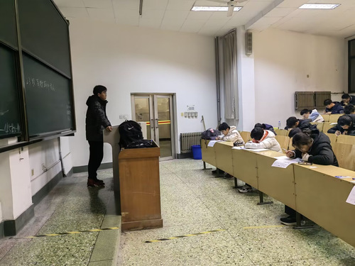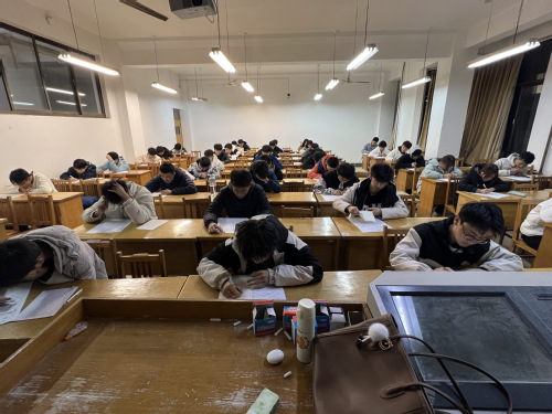在考试期间,同学们沉着冷静,仔细阅读试卷上的题目,严谨小心的作答每一个题目,每个学生都全神贯注,全身心投入到考试中。在此期间,考场监考员尽职尽责,仔细观察同学们的一举一动,维持考场纪律,给学生提供良好的作答环境。考试时间结束后,监考员仔细核对考生信息,随后收齐答题卡。考试结束后学风督察部会在最快的时间内批阅完答题卡,及时反馈给各个班级答题情况。