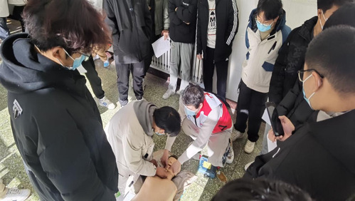 培训采取理论知识讲授与现场操作指导相结合的方式进行。首先,工作人员向参训师生进行了应急救护理论知识宣讲,主要包括如何进行心肺复苏以及如何使用AED进行急救等,授课完成后进行了相应的考核测试。之后,参加培训的师生分成10人左右小组,由工作人员进行现场操作示范,讲授操作要领,参训师生逐一进行实操救护并顺利通过了考核测试。
