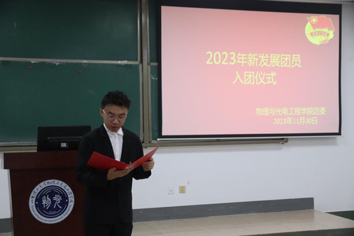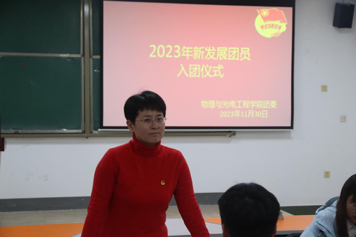 11月30日下午,K体育·(sports)官方网站在15号教学楼335举行2023年下半年新发展团员入团仪式。K体育·(sports)官方网站团委书记许敬老师、老团员代表和17名新发展团员参加仪式。仪式由辅导员张媛主持。