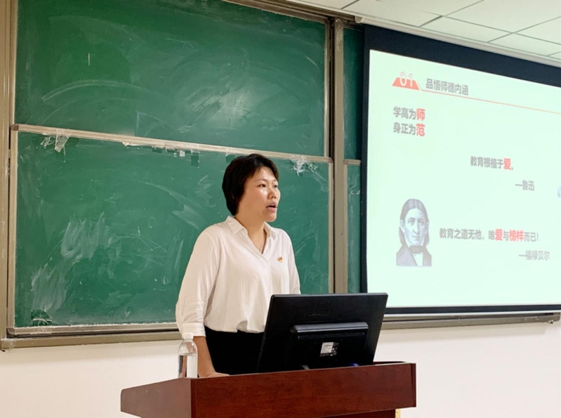 报告会上,秦洁教授以“品行思铸——在师德的践行中培育教学之艺术”为题,从品悟师德内涵、站稳三尺讲台、驾驭双线课堂、铸就教学艺术四个方面娓娓道来,她通过结合自身大量实践教育教学经验,向大家系统展示了自身在教育实践与师德涵养方面的独到见解和丰富经验,为大家奉献了一场生动详实,极具参考价值的精彩报告。最后,她与现场参会人员围绕学生教育、课堂管理和教师个人成长等问题进行了互动交流。