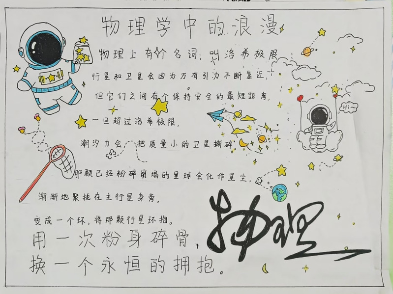 通过此次制作物理手抄报活动,加深同学对物理知识的理解与掌握,激发同学学习物理的兴趣,培养创新思维、资料收集与整理能力以及审美能力,让同学们在未来对物理的学习中更加得心应手。同时也为社团树立了良好形象,对社团未来发展有促进作用。
