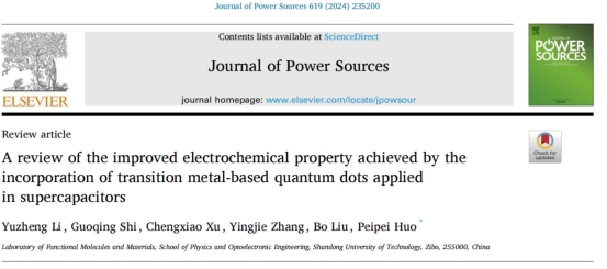 1. A review of the improved electrochemical property achieved by the incorporation of transition metal-based quantum dots applied in supercapacitors. Journal of Power Sources, 2024, 619, 235200. (中科院二区top IF=8.1)原文链接:https://doi.org/10.1016/j.jpowsour.2024.235200