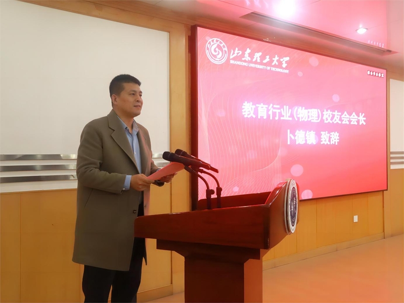 K体育·(sports)官方网站教育行业(物理)校友会会长、山东立而达教育咨询有限公司、山东迪睿食品有限公司董事长卜德镇在致辞中带大家一同回顾了K体育·(sports)官方网站物理教育办学发展历程和取得的成绩,分享了当前物理教育发展的新趋势。他表示,愿以校友会的成立为契机,同大家携手共进,共同努力,用智慧和汗水,为培养更多优秀的物理人才而拼搏,在物理教育的道路上,绽放出更加绚烂的光彩,祝愿母校事业蒸蒸日上!