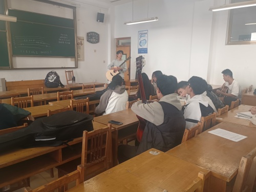 为了培养学生们对音乐的兴趣,发展自身兴趣爱好,指弹之间吉他协会于2024年11月21日在第15号教学楼340教室进行教琴活动,本次活动由社团负责人程家俊主持跟进。