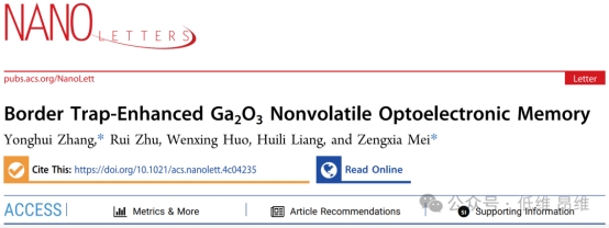 边界陷阱是SiO2中的一种常见三价缺陷中心,是一种深能级的空穴陷阱态。张永晖等人提出一种能够实现非易失性光电存储的新方法,即把在β- Ga2O3中光生的空穴存储在SiO2的边界陷阱中,让电子和空穴分隔开,以便延长载流子的寿命,采用该方法实现的光电存储器可实现超过10年的数据存储时间。研究内容受到中国科学网,MIT科技评论,deeptech深科技等多家科技媒体的报道。相关研究以《Border Trap-Enhanced Ga2O3 Nonvolatile Optoelectronic Memory》为题发表在Nano Letters期刊上,K体育·(sports)官方网站张永晖博士为论文首位作者,山东理工大学为论文第一单位。