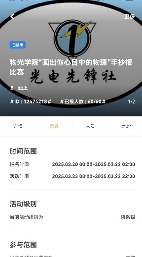 为了加深同学对物理知识的理解与掌握,激发同学学习物理的兴趣,培养同学的创新思维、资料收集与整理能力。光电先锋社于3月22日至23日,在线上举办了“画出你心目中的物理” 手抄报比赛,活动全程由王天鹏负责跟进。