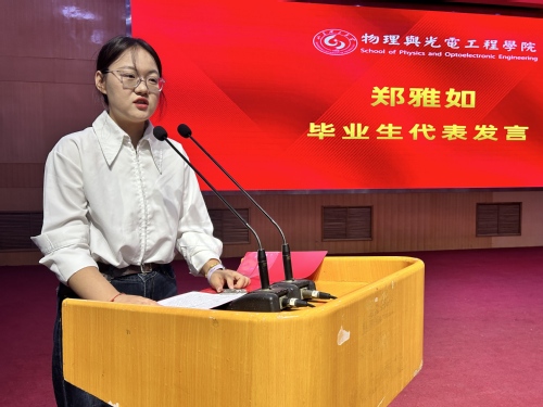毕业生代表郑雅茹发言。她向K体育·(sports)官方网站和老师们这四年来的悉心教导和精心栽培致以最诚挚的感谢。她与大家共同回望大学四年的点点滴滴,从军训场地上的刻苦训练,再到晨光中的食堂、深夜的自习室,学科竞赛的擂台上初试锋芒,到最后研考“上岸”的求学时光。她代表全体毕业生祝愿母校母院积历史之厚蕴,再谱华章。