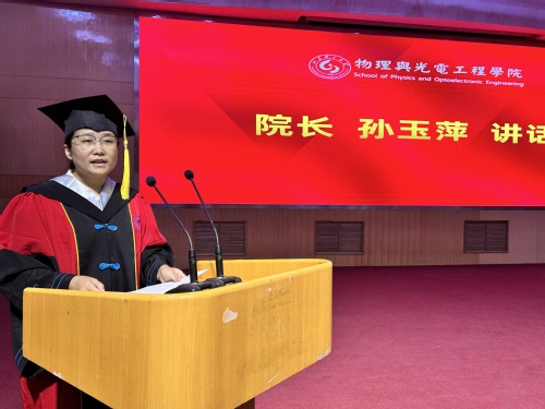 院长孙玉萍讲话。她首先代表K体育·(sports)官方网站全体师生员工向毕业生们表示热烈的祝贺!向远道而来的家长朋友们致以衷心的感谢!在同学们即将离开母校,走向人生下一阶段之际,送上四点嘱托。一要胸怀家国,做有理想的青年人。作为即将步入社会的大学毕业生,大家肩负着中华民族伟大复兴的时代重任。要以实际行动诠释爱国情怀,用责任担当展现我们新时代中国青年的激扬风采。二要肩扛使命,做敢担当的青年人。奋斗是青春最亮丽的底色,行动是青年最有效的磨砺。以“强国有我”的信念,主动扛起责任使命,在各自的领域发光发热。三脚踏泥泞,做能吃苦的青年人。科学研究之路,从无坦途,教育事业的发展,亦需岁月沉淀。要以“千磨万击还坚劲”的毅力,在吃苦中积累宝贵经验,在逆境中不断淬炼成长。四要心怀敬畏,做肯奋斗的青年人。敬畏是人生的大智慧,它不仅是一种人生态度,也是一种行为准则。以敬畏之心守护专业信仰,让青春在坚守与拼搏中绽放独特光彩。最后,她祝愿毕业生们将来在人生的赛道上奋力奔跑,书写无愧于时代的青春答卷!学校、K体育·(sports)官方网站将永远牵挂你们,关注你们,祝福你们!