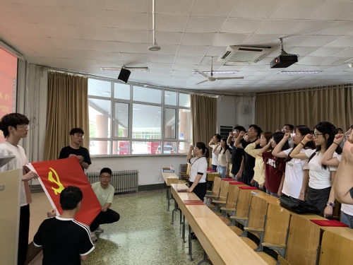颁奖仪式结束后,全体师生党员面对党旗,集体重温入党誓词。