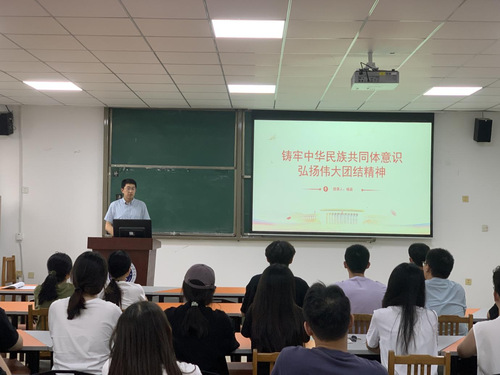 为深入贯彻习近平总书记关于加强和改进民族工作的重要思想,扎实推进铸牢中华民族共同体意识教育走深走实,9月11日下午,K体育·(sports)官方网站三个学生党支部组织开展了“铸牢中华民族共同体意识”主题教育活动。K体育·(sports)官方网站党委副书记、纪委书记杨晨以“铸牢中华民族共同体意识 弘扬伟大团结精神”为题为全体学生党员讲授专题党课。